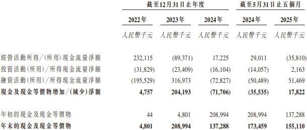 于2022年及2024年,海伟股份经营活动所得现金净额分别为人民币232.1百万元及人民币17.2百万元。于2023年及截至2025年5月31日止五个月,海伟股份经营活动所用现金净额分别为人民币89.4百万元及人民币35.8百万元。
