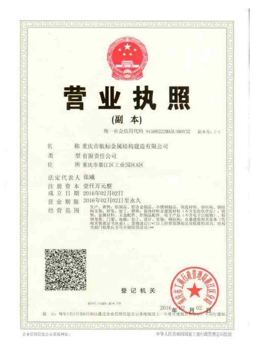 重慶市航標(biāo)金屬結(jié)構(gòu)建造有限公司主要生產(chǎn)加工三大系列產(chǎn)品:第一是建筑鋁幕墻、建筑新型裝飾材料,如鋁單板、雙曲面鋁單板、鋁質(zhì)天花板、造型鋁質(zhì)吊頂板、鋁質(zhì)蜂窩板、多彩保溫隔熱裝飾一體板的整體制作,以及不銹鋼板、鐵板的成型加工及表面處理;第二是工廠標(biāo)準(zhǔn)化研發(fā)制造各種風(fēng)格的輕鋼建筑和輕重鋼結(jié)合建筑,以及其它裝配式建筑,公司引進高智能化輕鋼成型加工生產(chǎn)線和專用軟件,集建筑設(shè)計、鋼結(jié)構(gòu)設(shè)計、建筑室內(nèi)外裝飾設(shè)計,鋼結(jié)構(gòu)生產(chǎn)加工、鋼結(jié)構(gòu)裝配安裝、建筑物室內(nèi)外裝飾裝修全套服務(wù)于一體。客戶只需表達(dá)所需建筑物使用功能意愿,我司即可給出多套設(shè)計方案供客戶選擇,按照客戶選定的方案進行快速、高效、節(jié)能、安全環(huán)保的加工建造。我司推出世界各國不同風(fēng)格、造型各異、全精裝二到三層80——600㎡的輕鋼別墅,從設(shè)計到交付使用只需要兩個月左右即可完工;第三是公司配置了目前國內(nèi)先進的開平生產(chǎn)線,專業(yè)致力于厚度1.0——6mm,寬度600——2000mm的鋁卷加工、銷售。